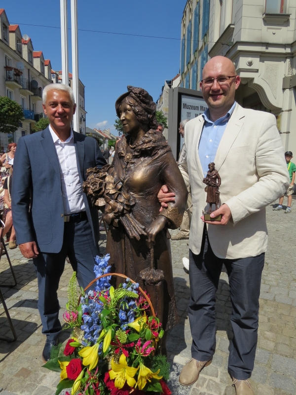 8 czerwca 2014 mieliśmy zaszczyt uczestniczyć w wyjątkowej uroczystości jaka miała miejsce na ul. Tumskiej w Płocku. Właśnie tam stanął pomnik znakomitej płocczanki, aktorki i założycielki zespołu Mazowsze – Miry Zimińskiej-Sygietyńskiej. Pomysł budowy pomnika pojawił się w 2010 roku. Patronat Honorowy nad akcją objęła Posłanka na Sejm RP, Elżbieta Gapińska.